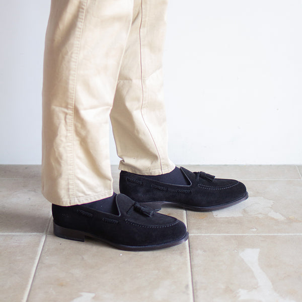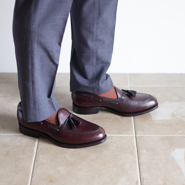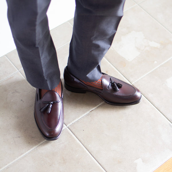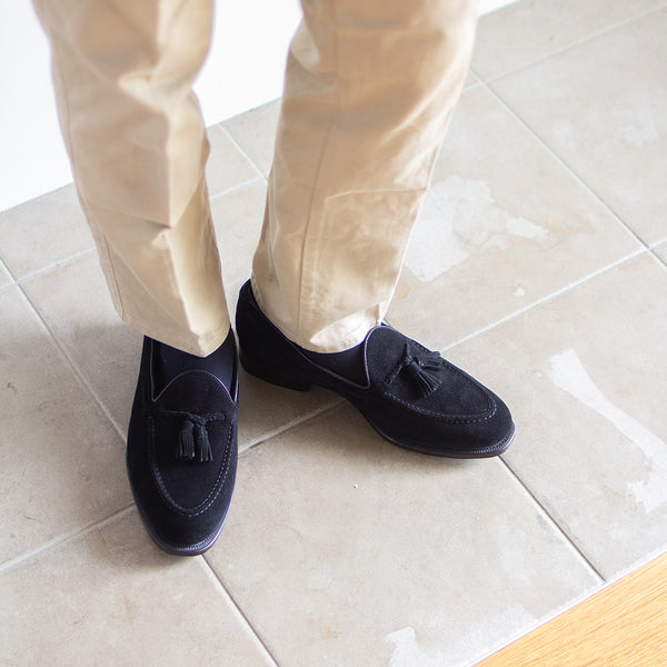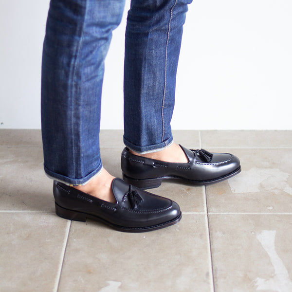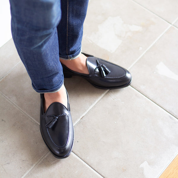 タッセルローファーは、フォーマルな革靴とは対照的に、カジュアルでリラックスしたスタイルを持つ靴の種類です。特徴は、前甲部分にタッセル(飾り房)が取り付けられ、伝統的なデザインであり、この靴の特徴的なアクセントとなっています。