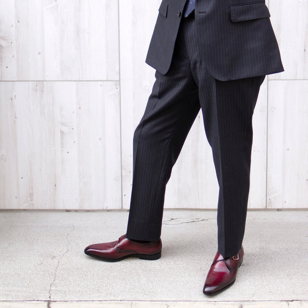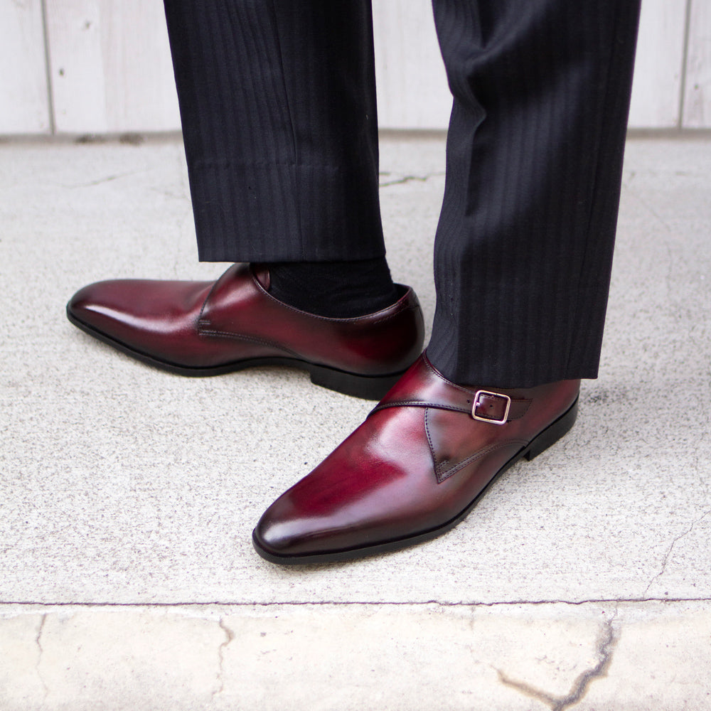 モンクストラップには、バックルが一つの「シングルモンク」と、二つ並んだ「ダブルモンク」の種類があります。特にダブルモンクは、エレガントさとモダンな雰囲気を併せ持つデザインとして人気が高く、ビジネススタイルからカジュアルまで幅広い装いに合わせやすい革靴として多くの人に支持されています。