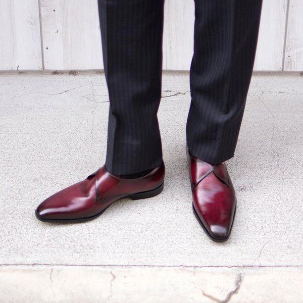 ストラップで固定する構造は、着脱がしやすくフィット感を調整しやすいという実用的な魅力もあります。また、靴ひもがないため甲のラインが美しく見え、足元に洗練された印象を与えてくれるのも特徴です。クラシックな背景を持ちながらも現代的なスタイルにもよく合うモンクストラップは、ドレスシューズの中でも個性と上品さを兼ね備えた一足と言えるでしょう。