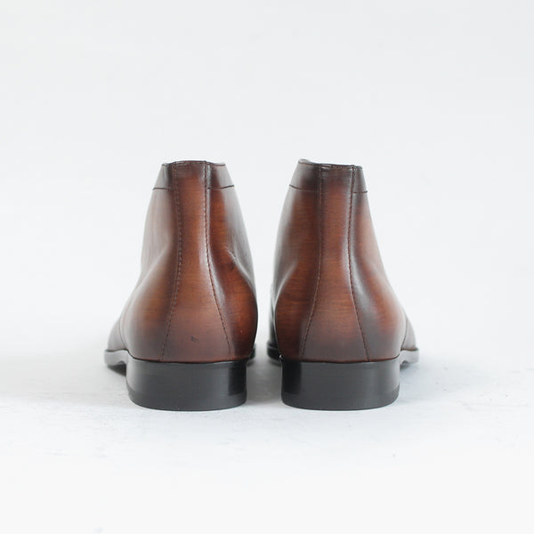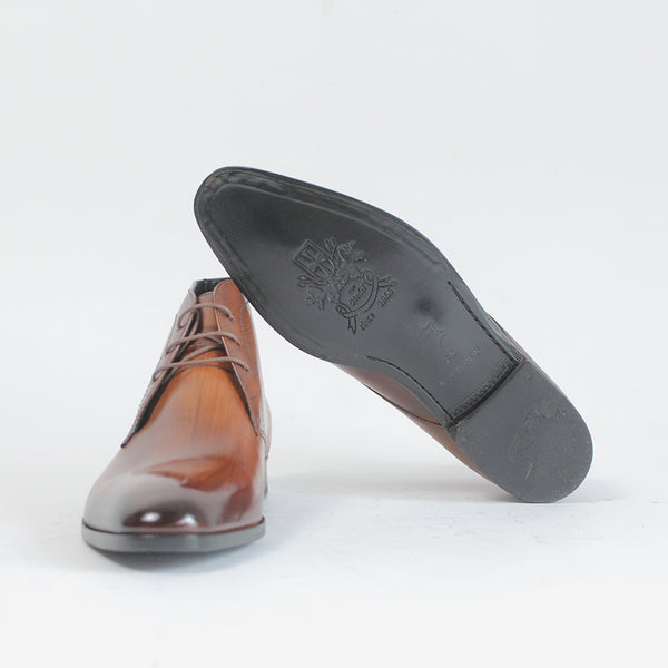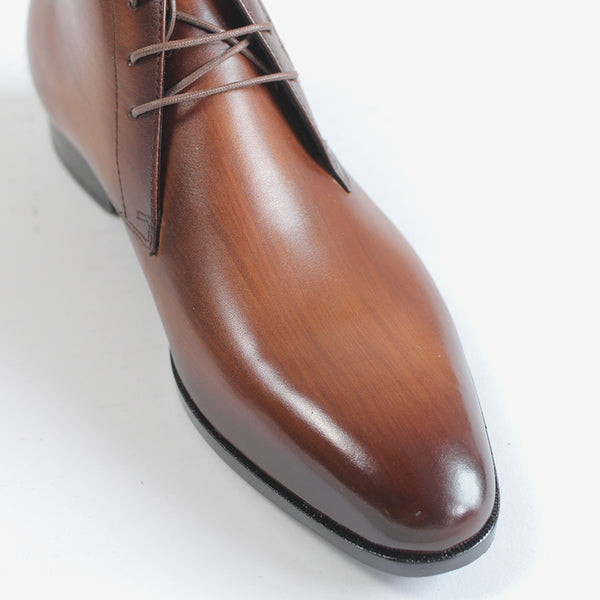 チャッカーブーツとは、くるぶし丈ほどの高さを持ち、2〜3組のシューホール(靴ひも穴)を備えたシンプルなデザインのブーツを指します。足首までを覆うほどの短めの丈と、無駄のないすっきりとしたシルエットが特徴で、革靴の上品さとブーツの履きやすさを兼ね備えたスタイルとして知られています。名称の「チャッカー」は、ポロ競技の試合時間を区切る単位「チャッカー」に由来するといわれ、競技の合間に履かれていたブーツがルーツとされています。