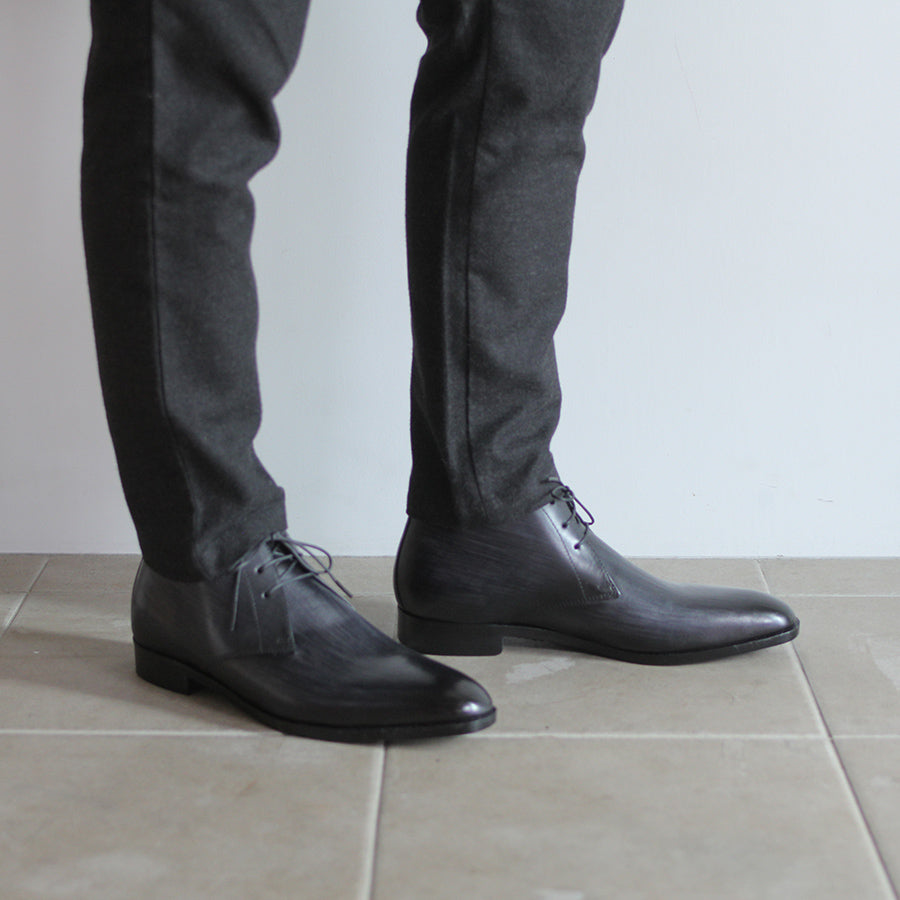 上品でありながら程よいカジュアルさを持つチャッカーブーツは、ジャケットスタイルやデニムなどとも相性が良く、さまざまなコーディネートに自然に馴染みます。シンプルで洗練されたデザインは時代に左右されにくく、長く愛用できる革靴の定番スタイルと言えるでしょう。